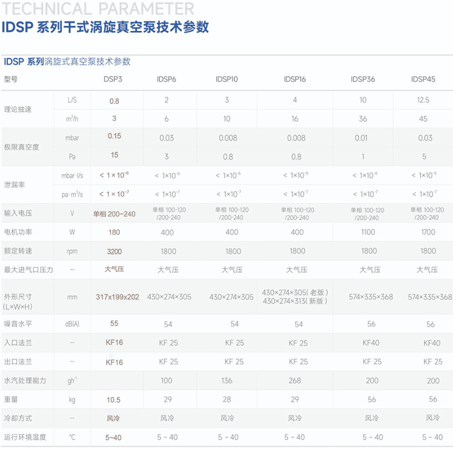 涡旋真空泵是新一代的无油机械泵,它具有结构简单,密封性能好,极限真空高等优点。作为一种高新技术产品,涡旋式干式真空泵在设计、制作方面都拥有非常高的技术含量,在应用方面具有运行成本低、工作寿命长、可靠性高、噪音低等显著特点,在无油清洁应用领域有着不可比拟的优势,因此受到市场的高度推崇。IDSP 系列涡旋干泵是鲍斯真空针对国内外市场下游应用特点而推出的性能卓越、价格竞争优势明显的涡旋干泵。